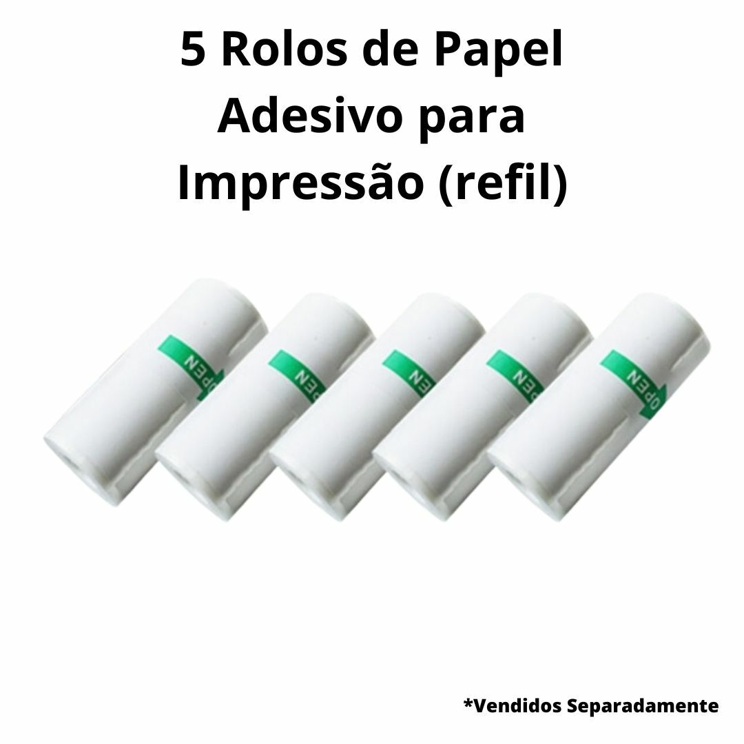 Já vem com um rolinho de papel para a impressão dentro da caixa como brinde. Compre junto mais 5 rolos de papel normal ou papel adesivo e não se preocupe nunca mais em ter que comprar tinta para impressora na sua vida !